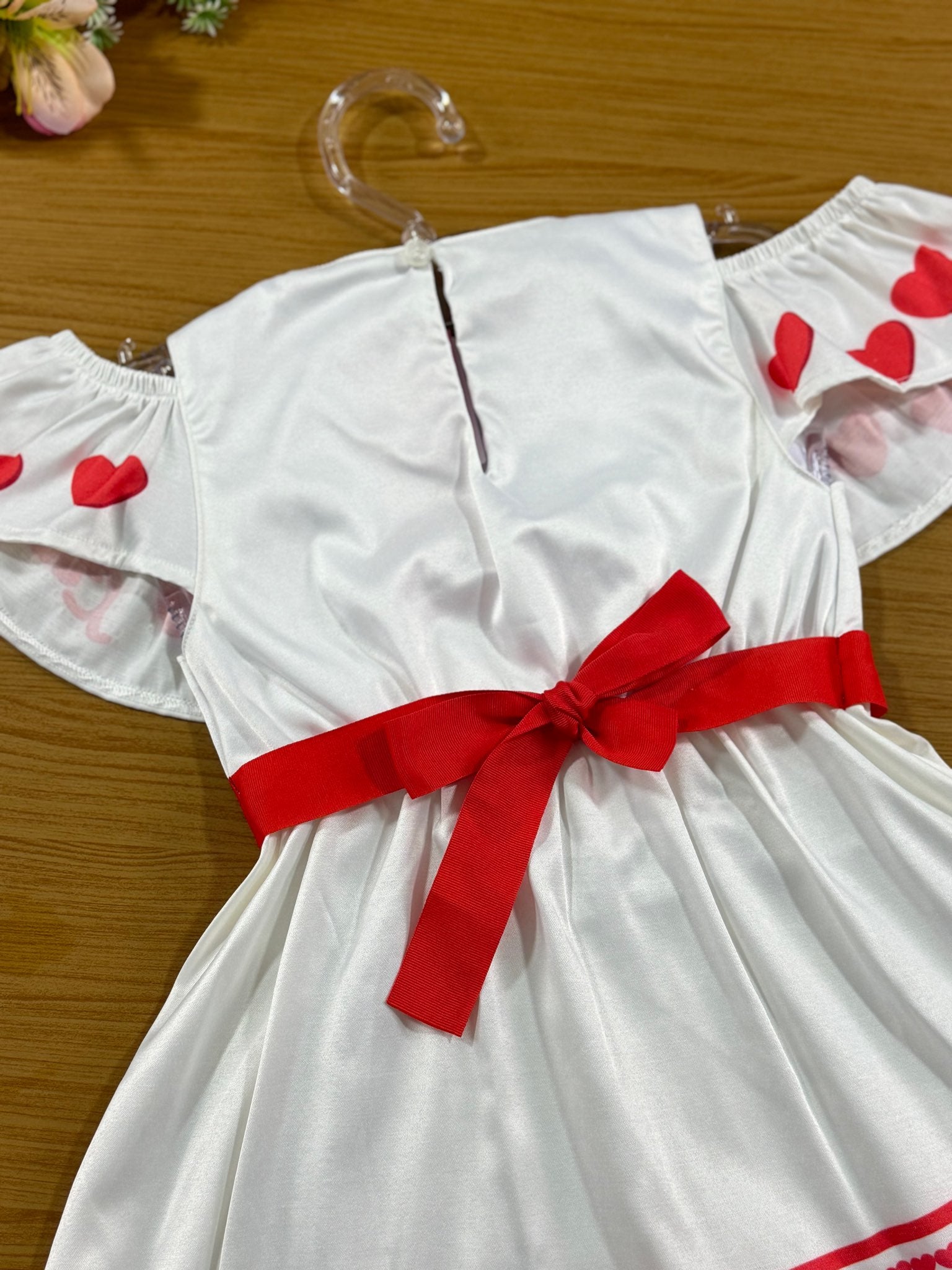 Vestido Infantil Cinti Verão Branco e Vermelho Coração Love