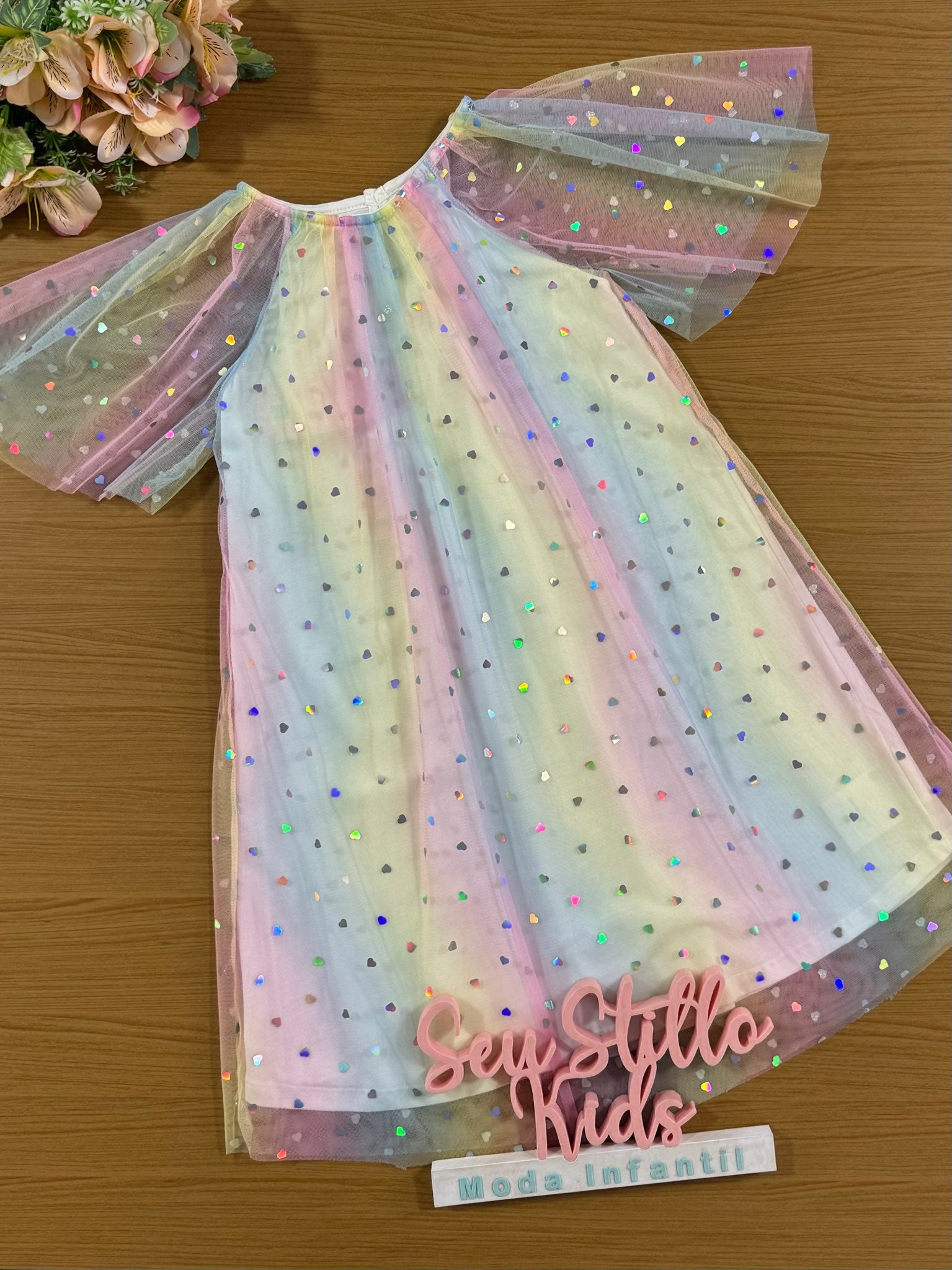 Vestido Infantil Cinti Verão com Tule Arco Íris