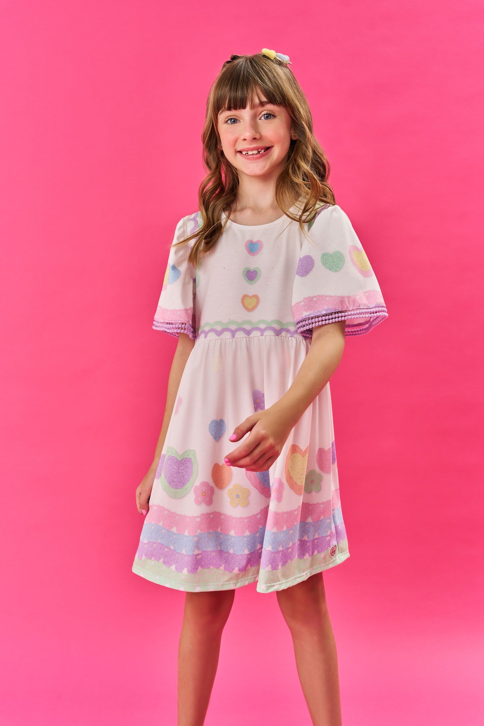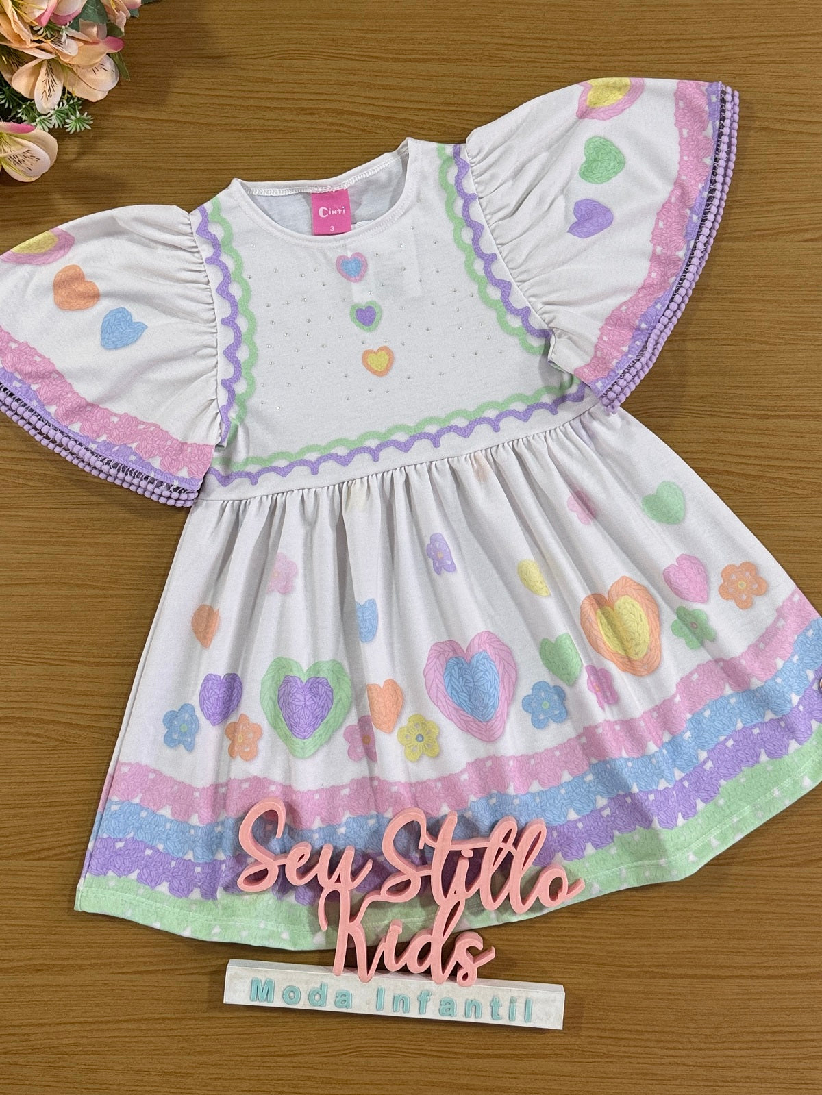 Vestido Infantil Cinti Verão Coração e Flores