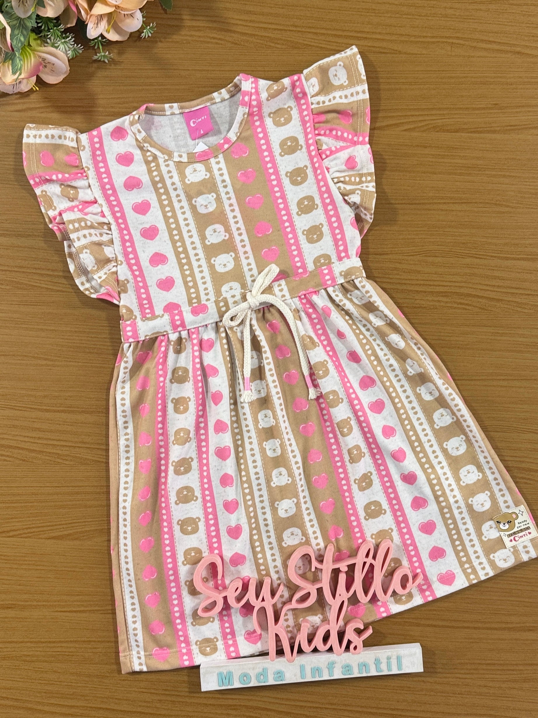 Vestido Infantil Cinti Verão Coração e Ursinho