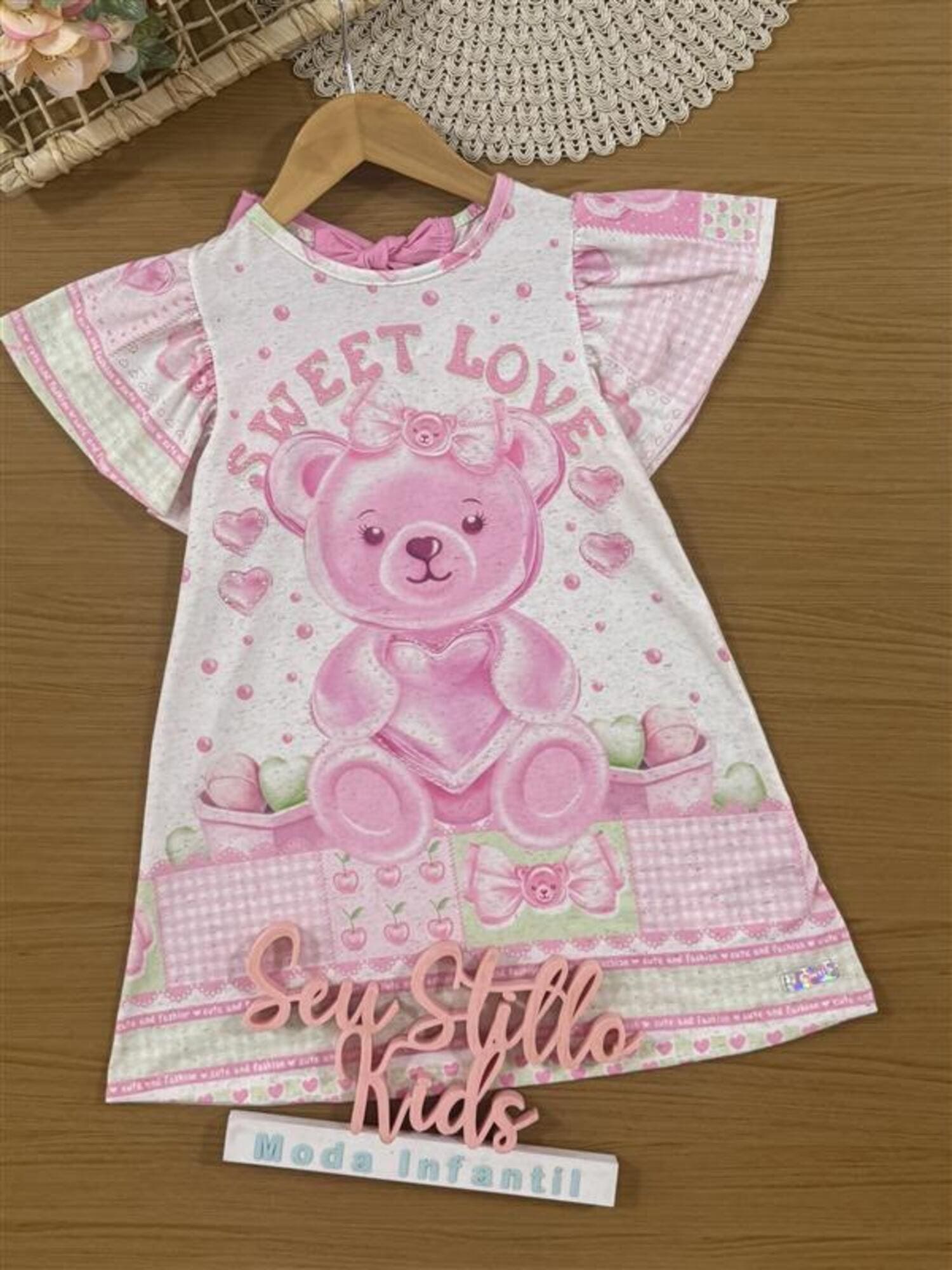 Vestido Infantil Cinti Verão Off White Ursinha Sweet Love