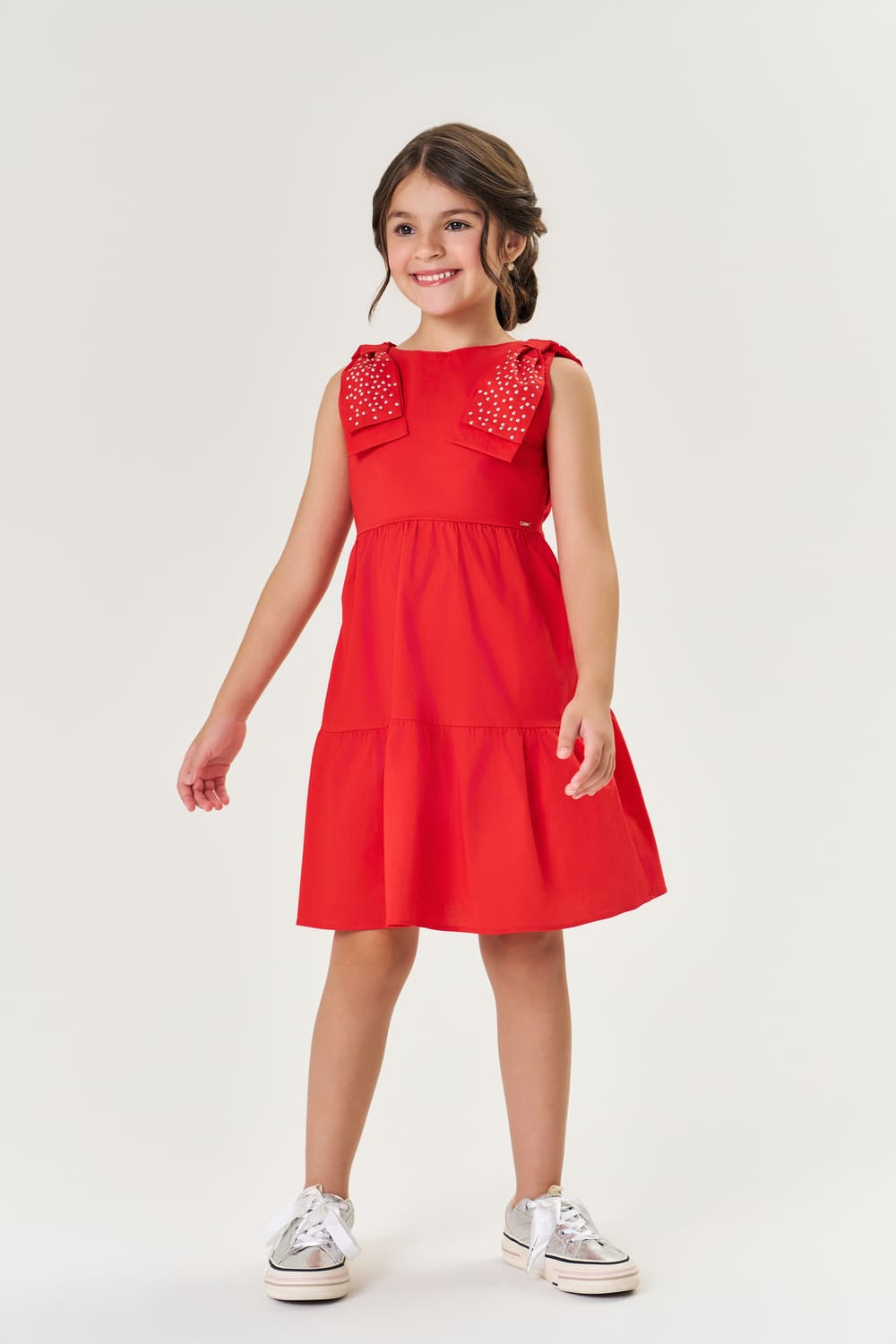 Vestido Infantil Cinti Verão Vermelho com Laços Strass Natal