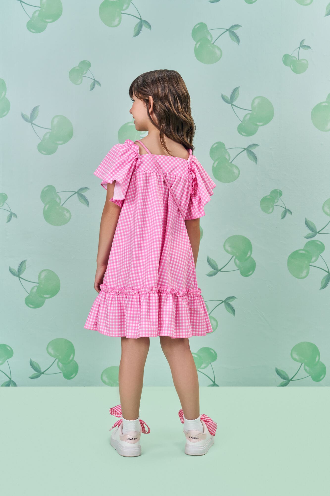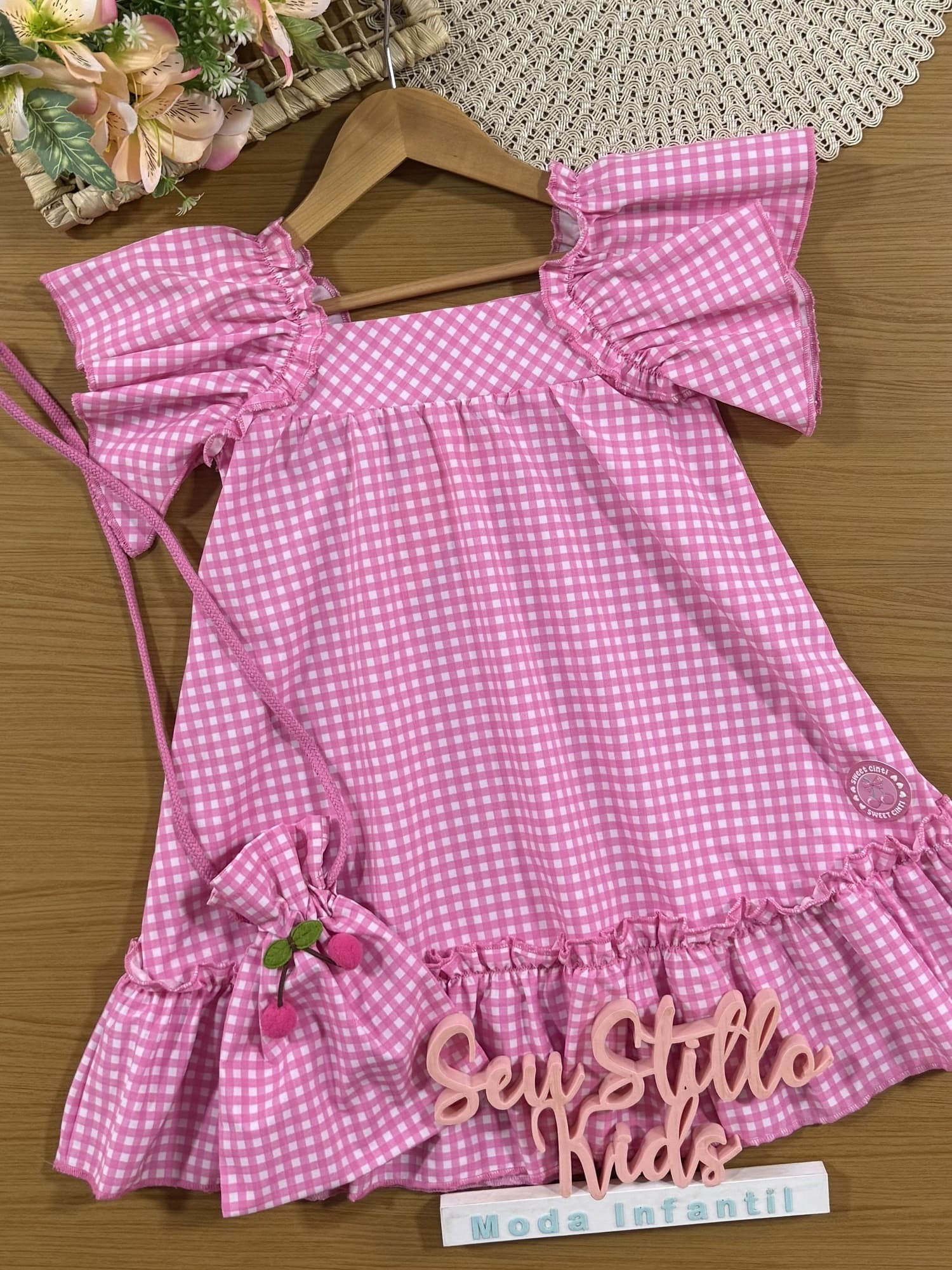 Vestido Infantil Cinti Verão Xadrez Rosa com Bolsinha
