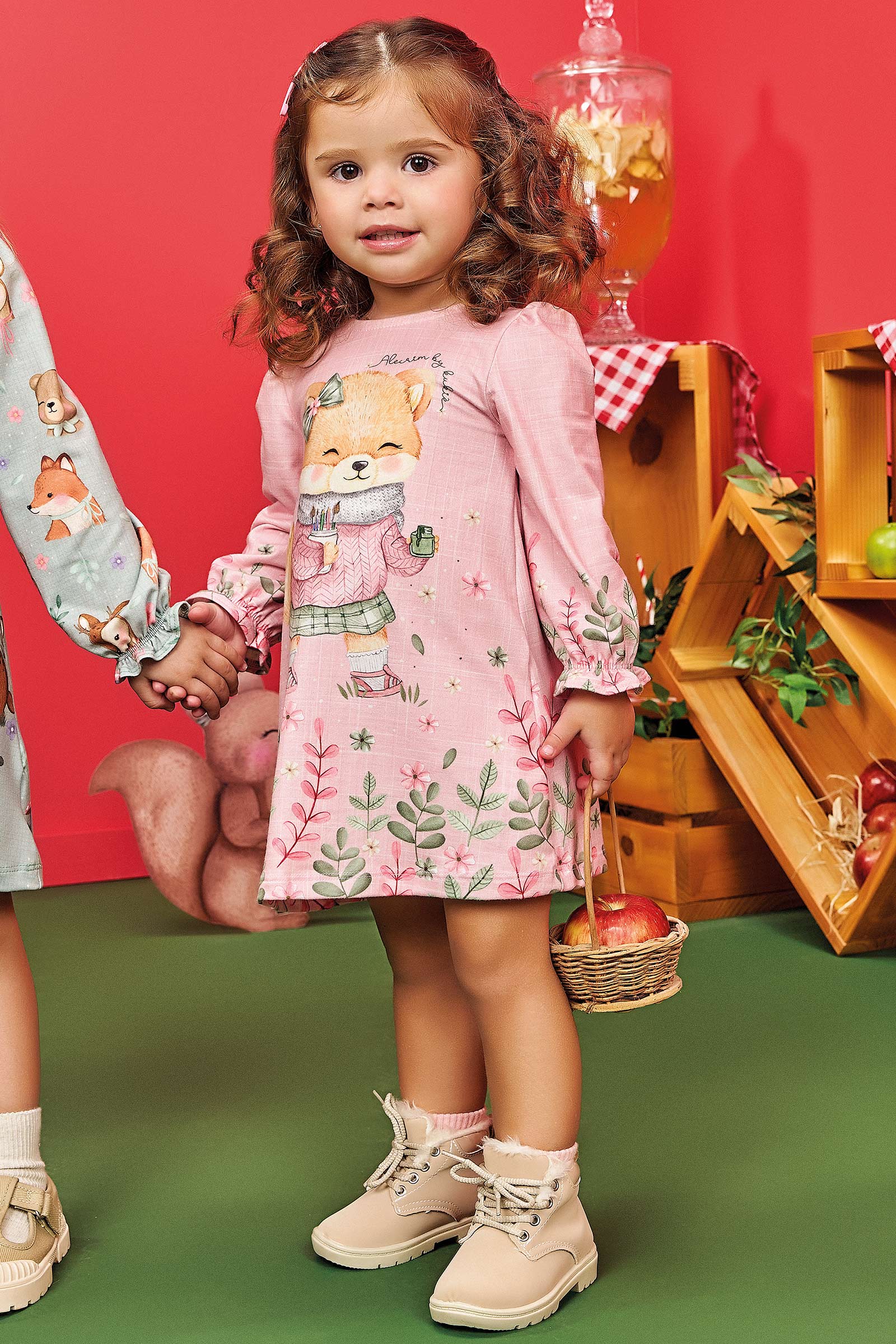Vestido Infantil Kukie Alecrim Baby Inverno Rosa Raposinha