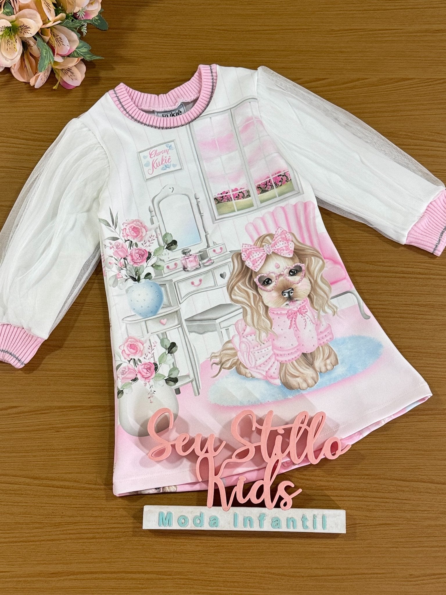Apresentamos o Vestido Kukie inverno, perfeito para proporcionar estilo e conforto para sua princesa na estação mais fria do ano.