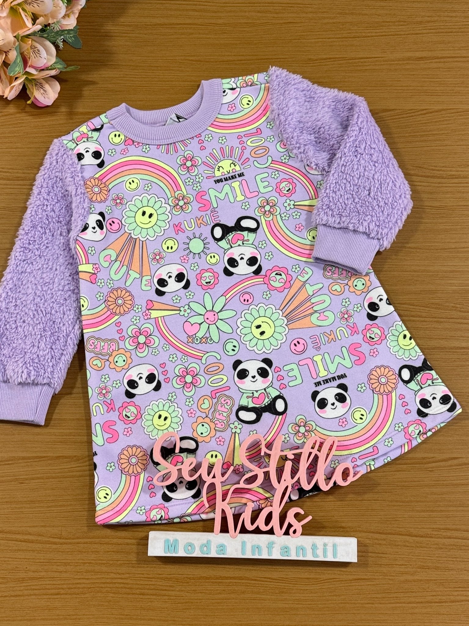 - Vestido em Moletom Peluciado e Pelo Carneirinho | 80% Poliéster | 20% Algodão |