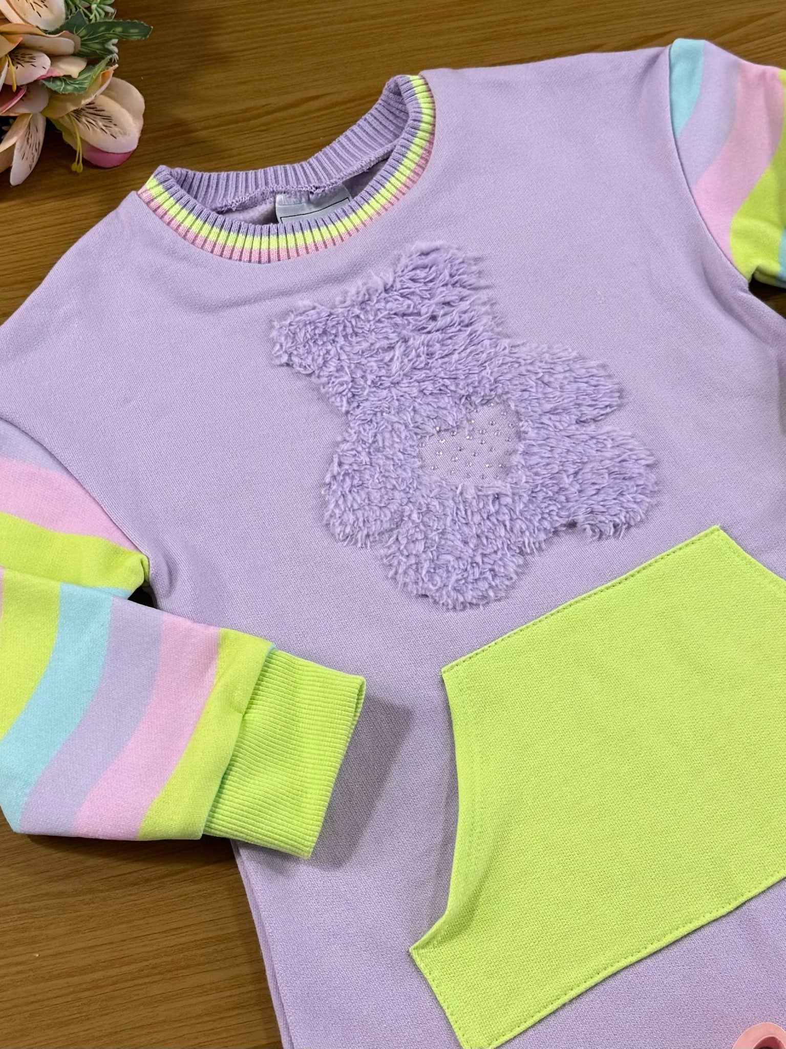 Vestido Infantil Kukie Inverno Moletom Ursinho Lilás
