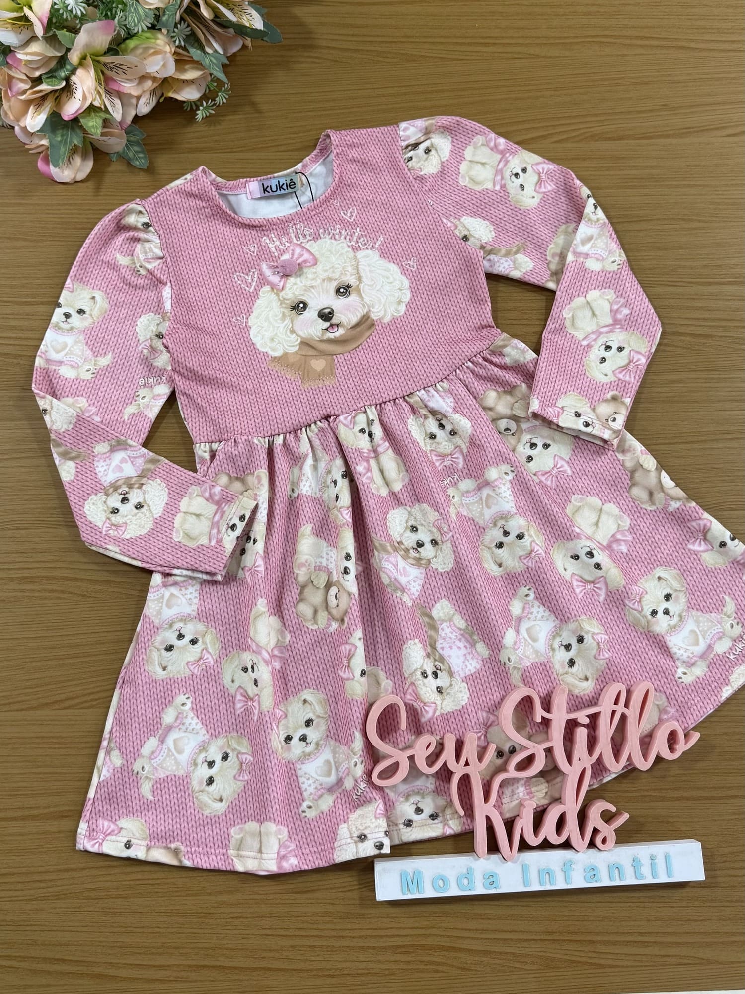 Vestido Infantil Kukie Inverno Rosa Cachorrinha