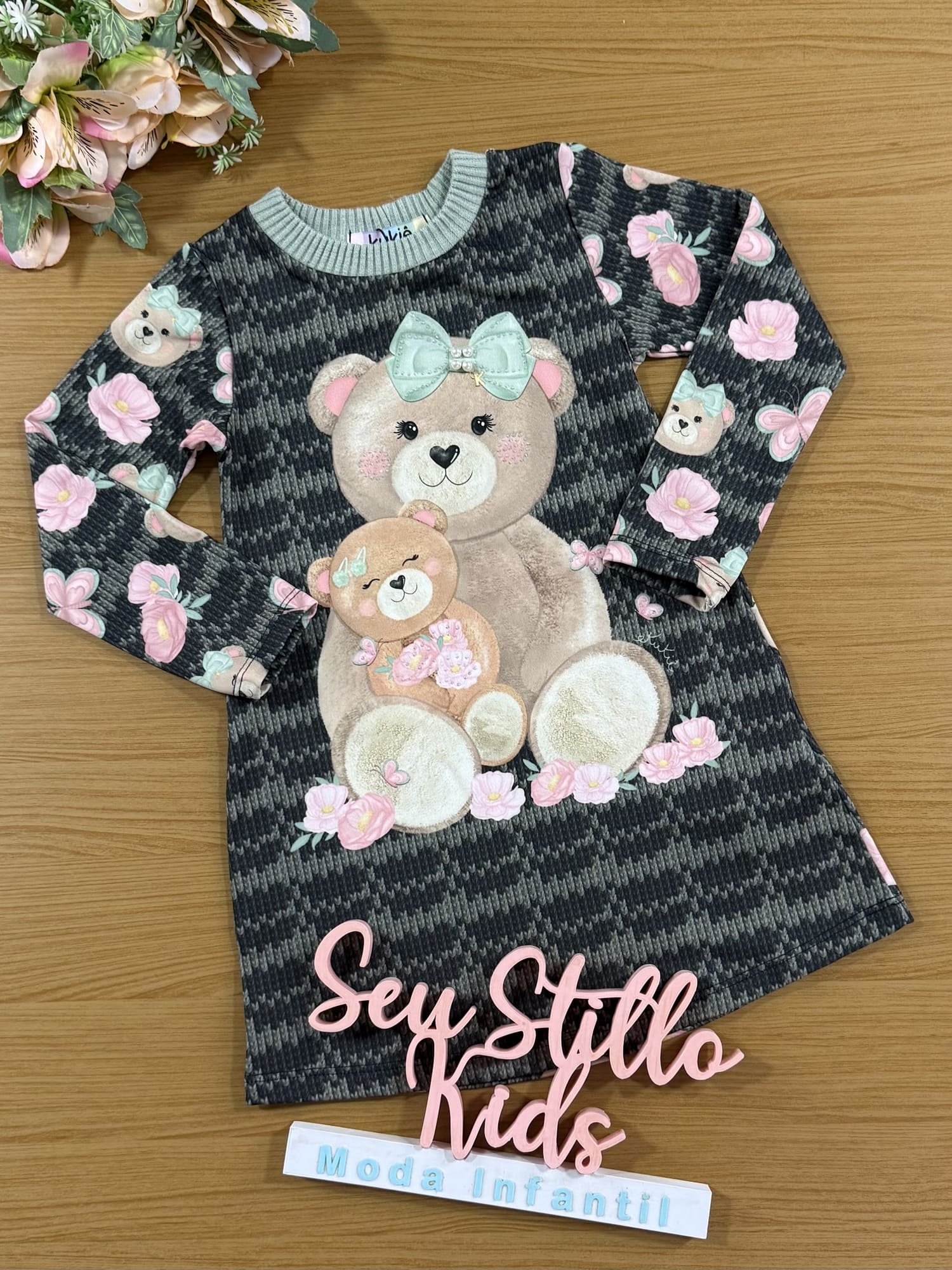 Vestido Infantil Kukie Inverno Verde Ursinha