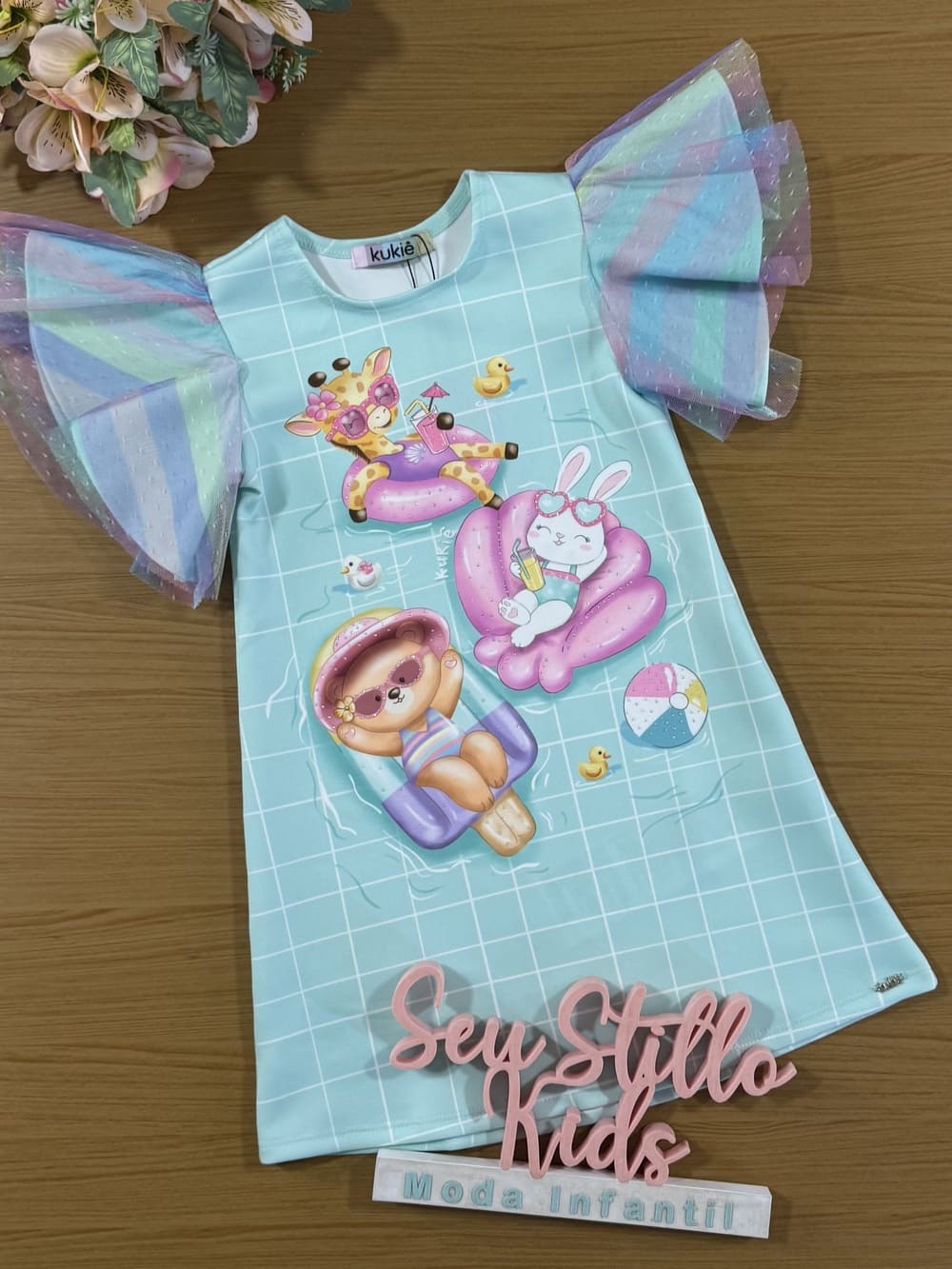 Vestido Infantil Kukie Verão Azul Festa na Piscina