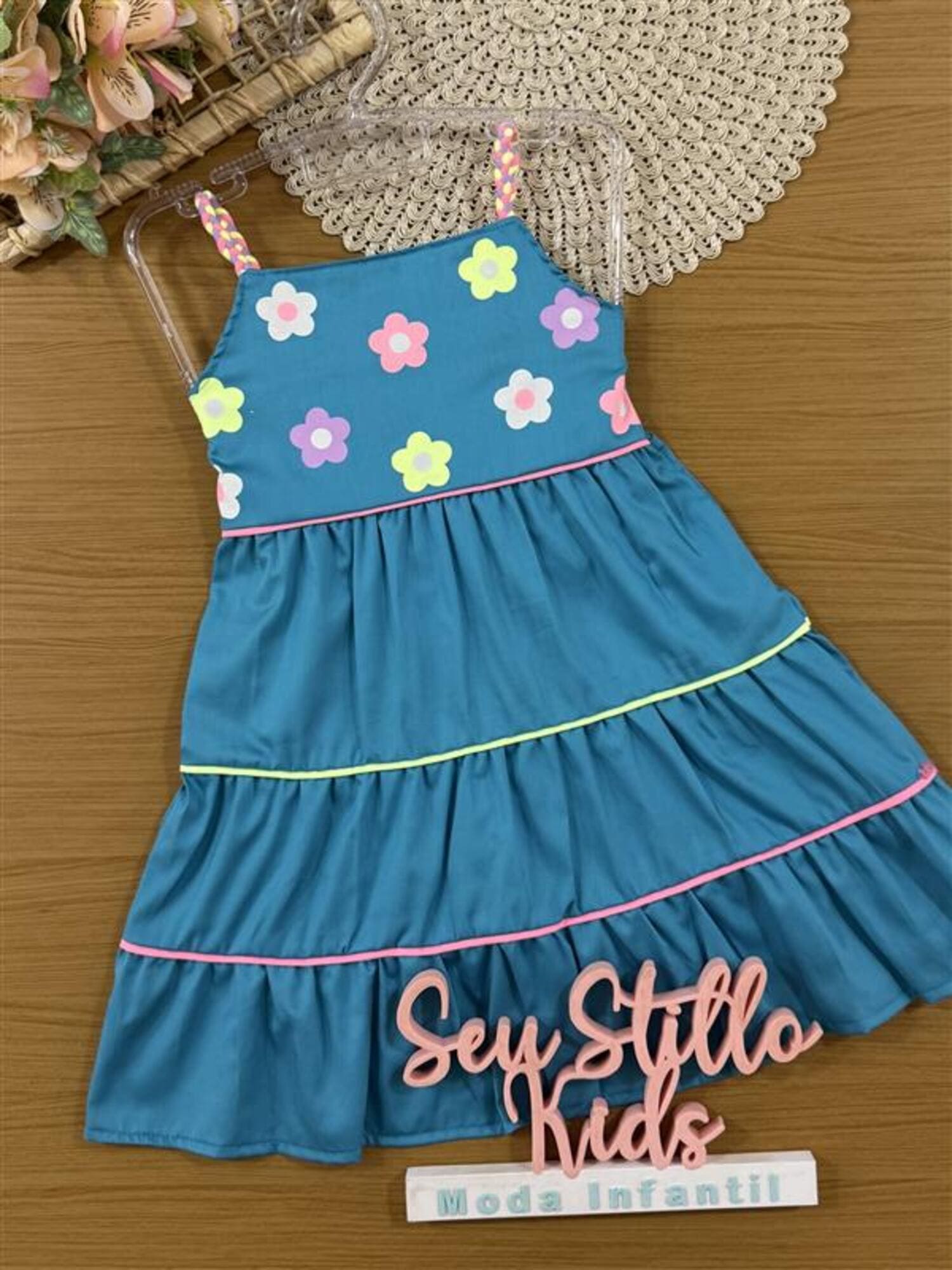 Vestido Infantil Kukiê Verão Azul Florzinha