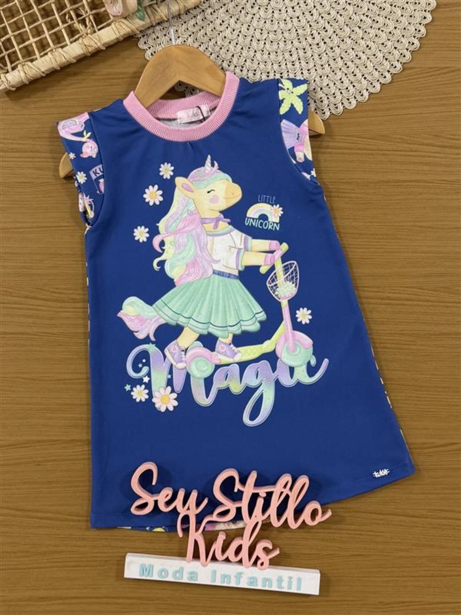 Vestido Infantil Kukiê Verão Azul Unicórnio