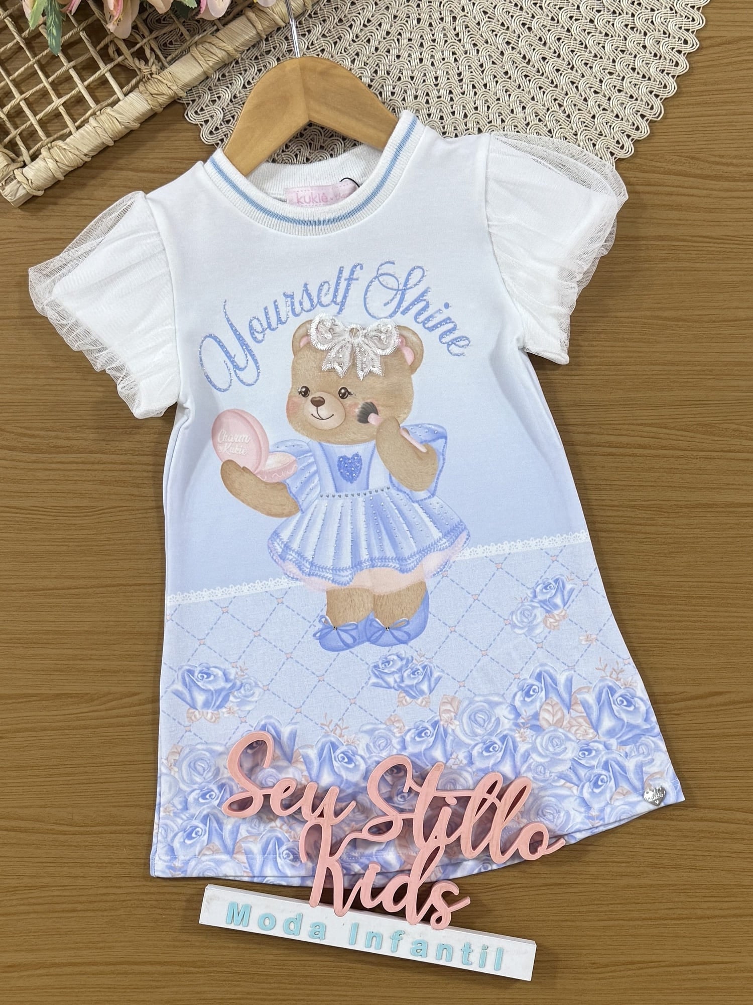 Vestido Infantil Kukiê Verão Azul Ursinha Princesa