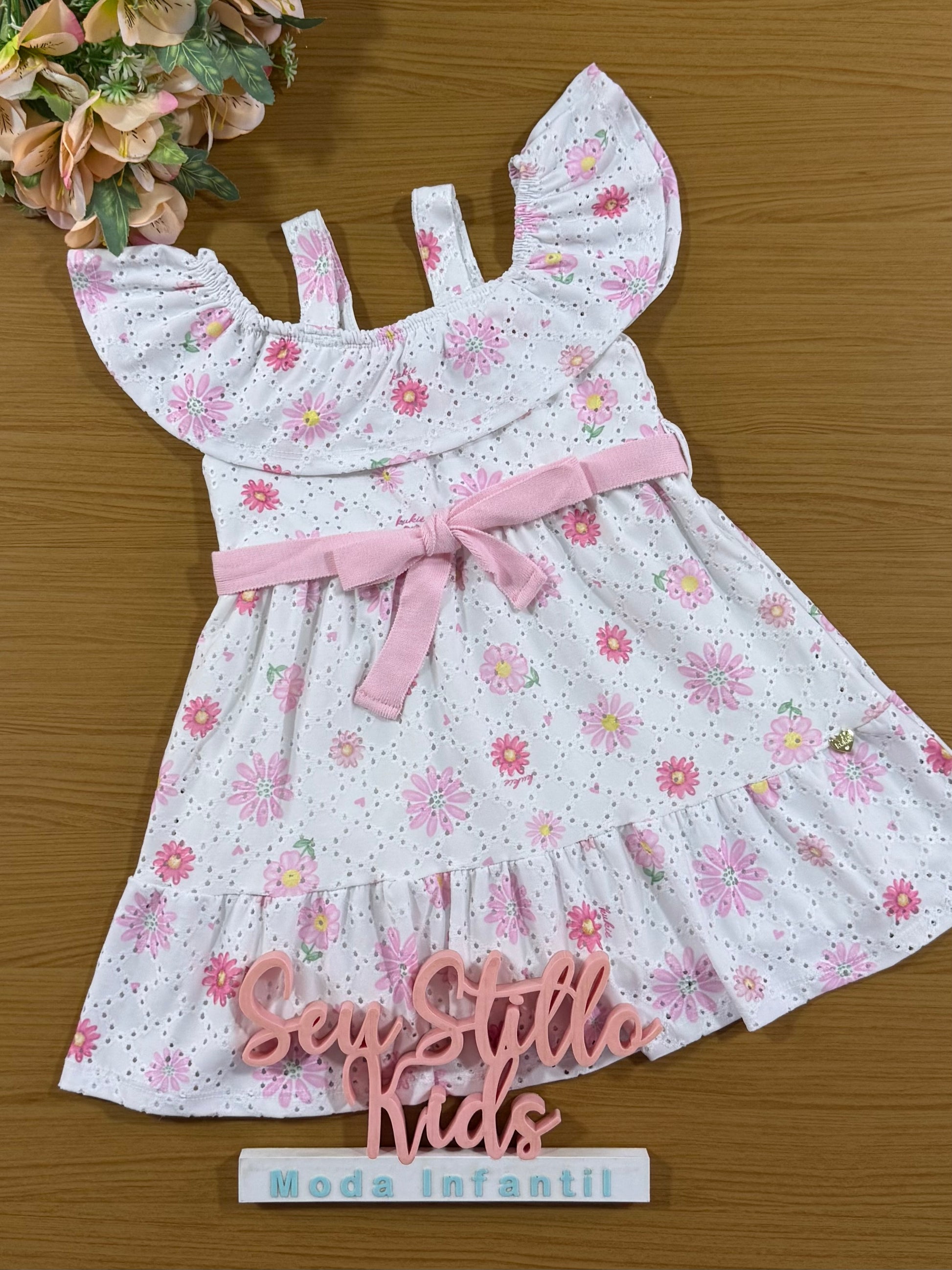 Vestido Infantil Kukie Verão Branco em Laise Floral