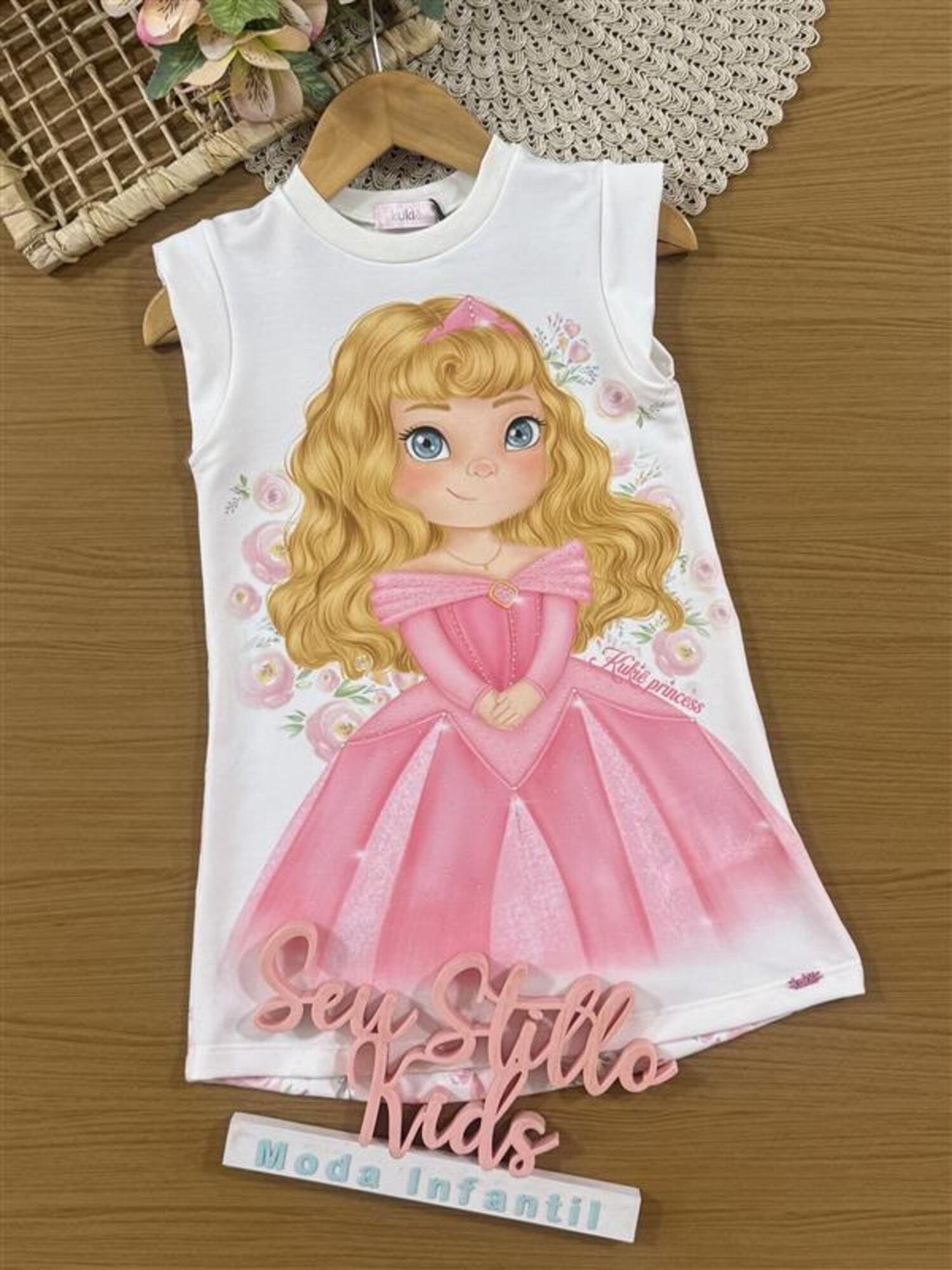 Vestido Infantil Kukiê Verão Branco Princesa Aurora