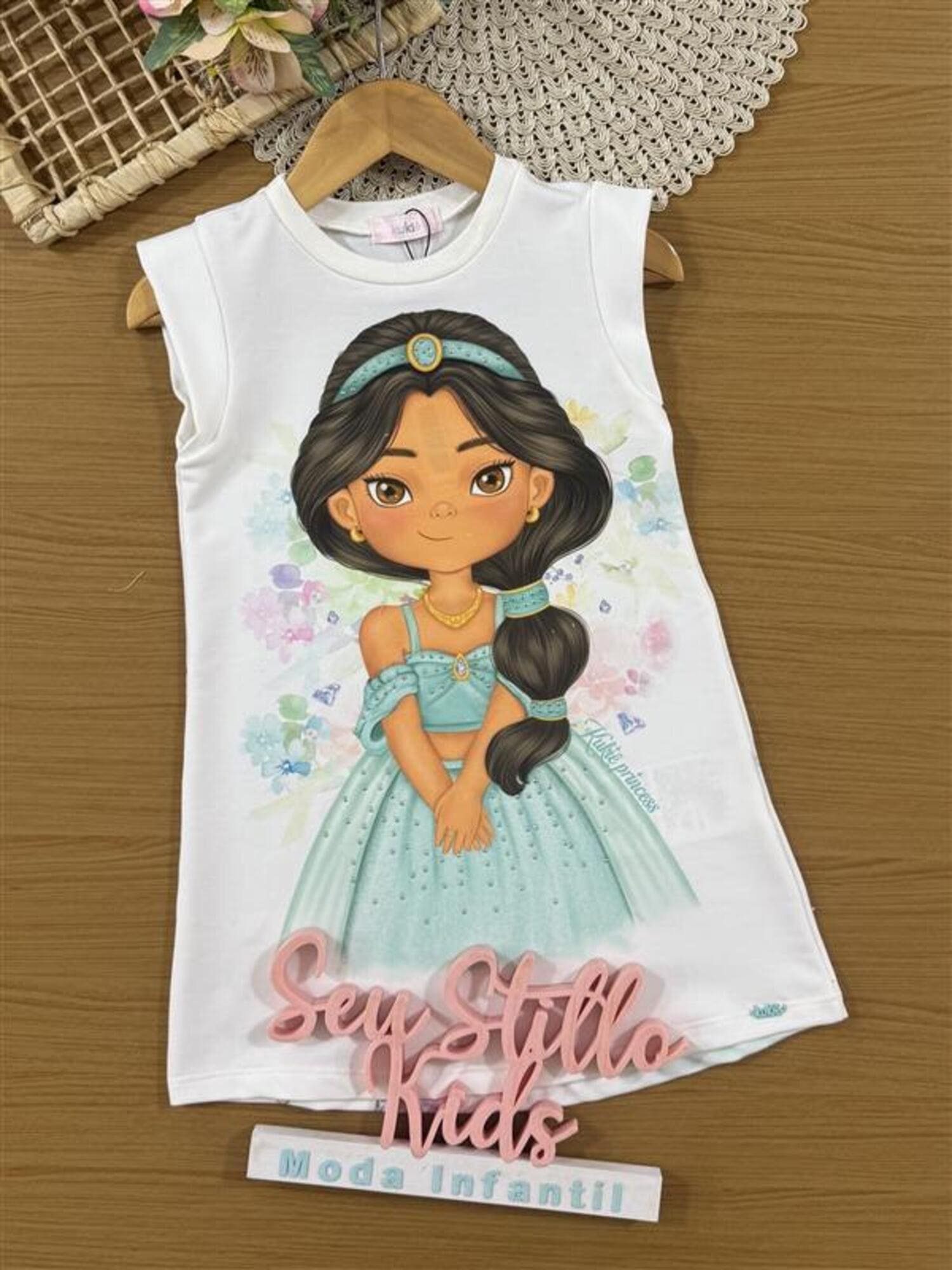 Vestido Infantil Kukiê Verão Branco Princesa Jasmine