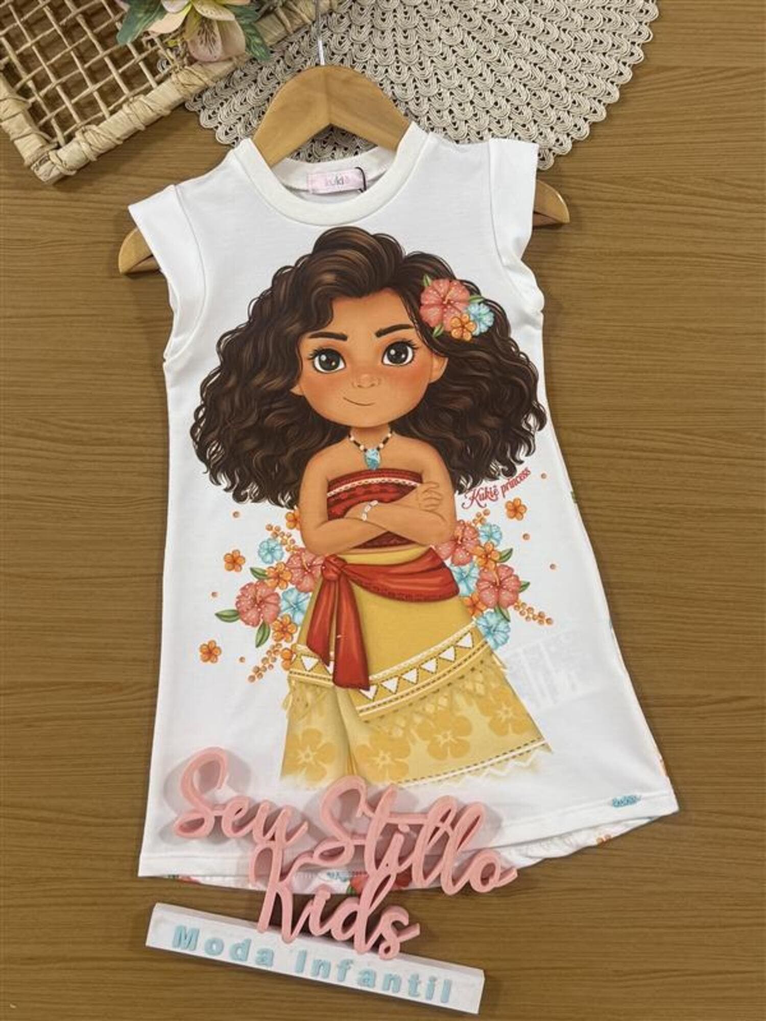 Vestido Infantil Kukiê Verão Branco Princesa Moana