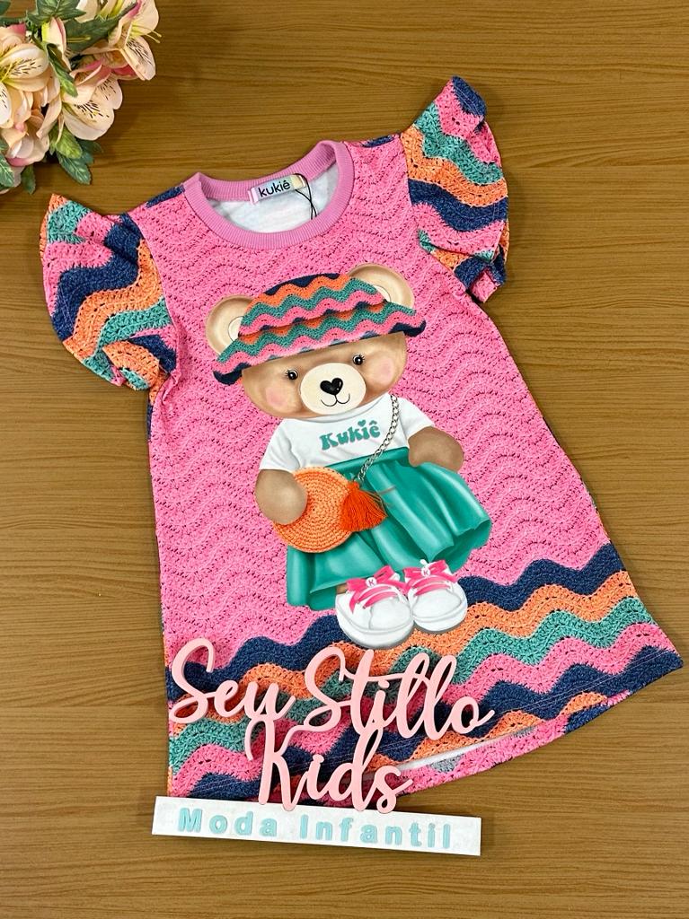 Vestido Infantil Kukie Verão Crochê 3D Ursinha