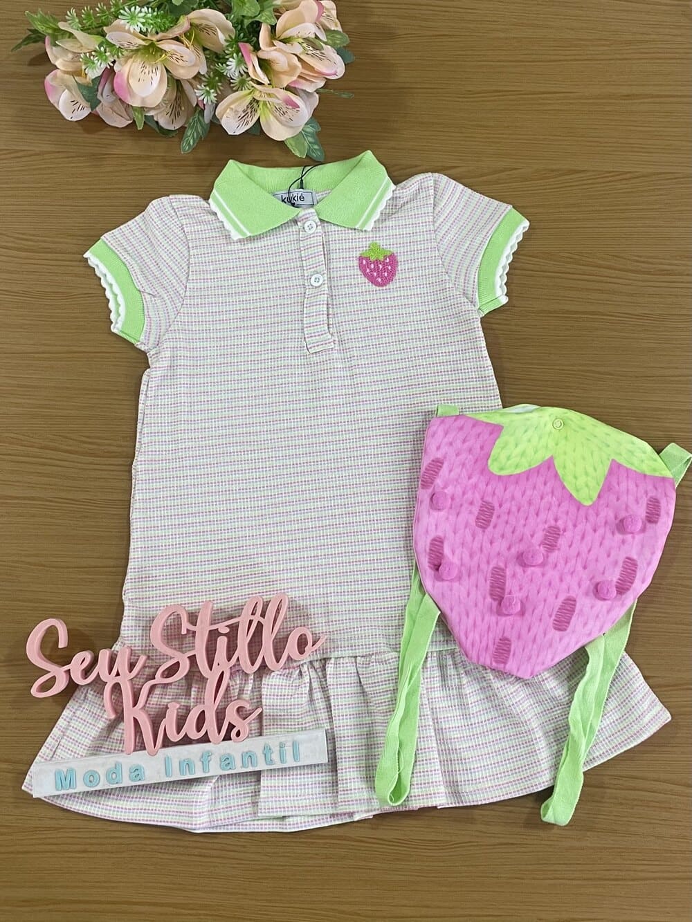 Vestido Infantil Kukie Verão Moranguinho Com Mochila
