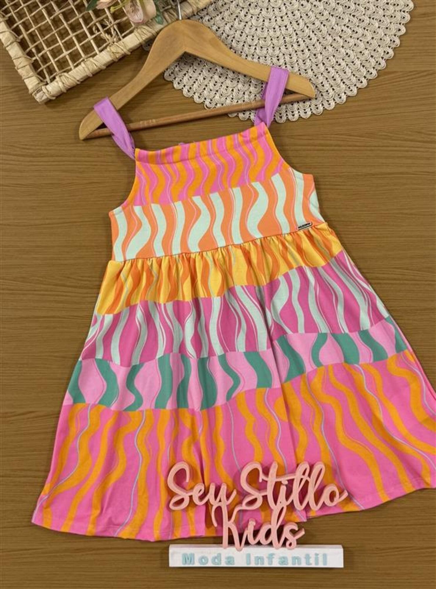 Vestido Infantil Kukiê Verão Ondas Coloridas