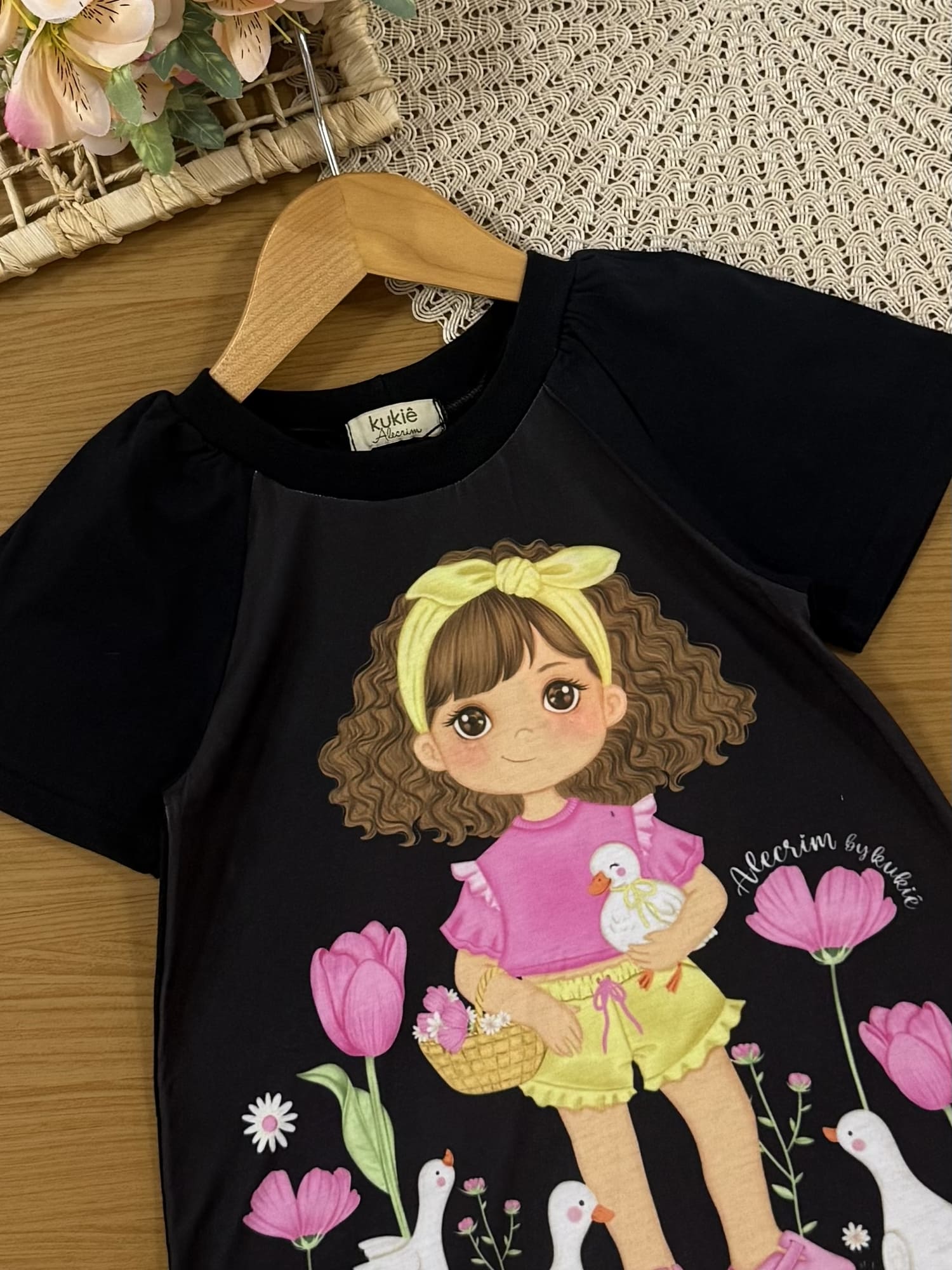 Vestido Infantil Kukiê Verão Preto Menina no Jardim