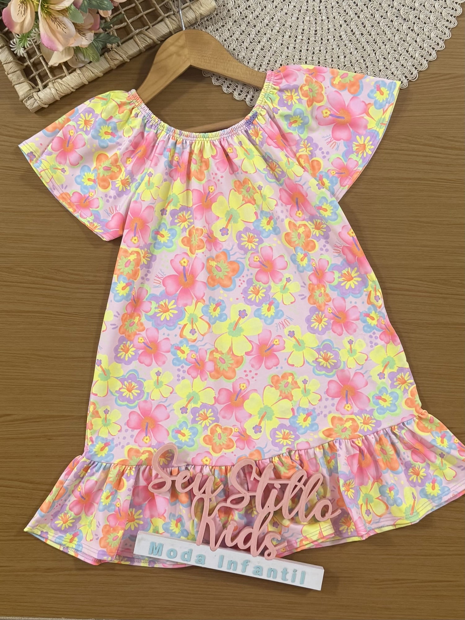 Vestido Infantil Kukiê Verão Rosa Flores Coloridas