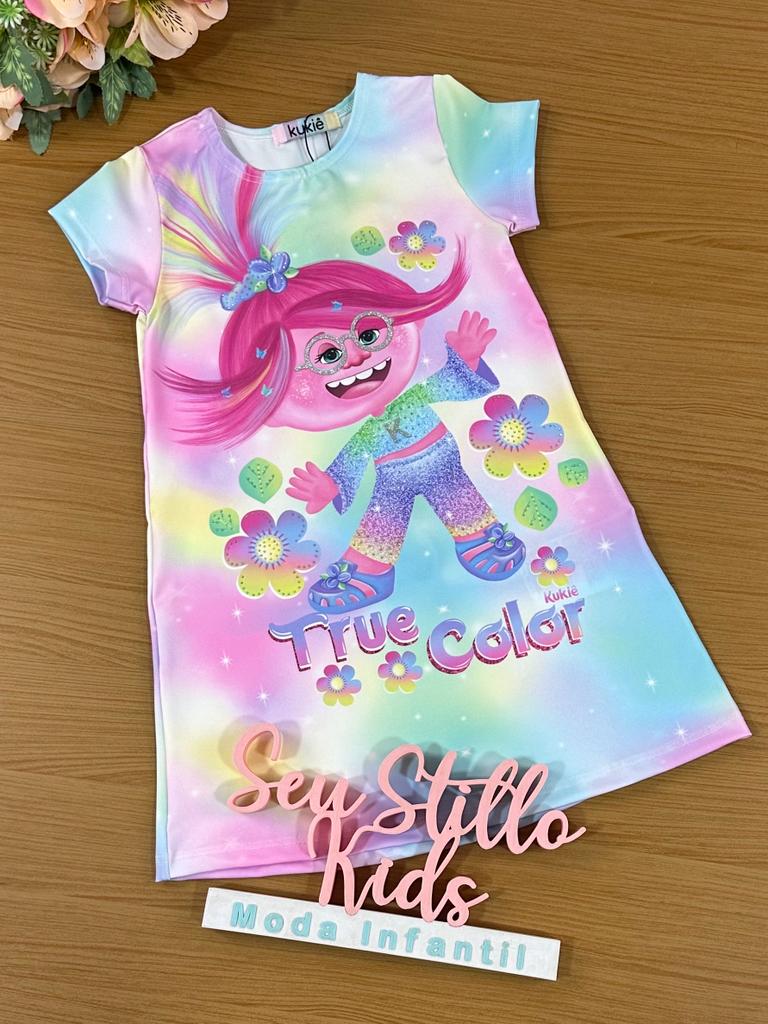 Vestido Infantil Kukie Verão True Color Trolls