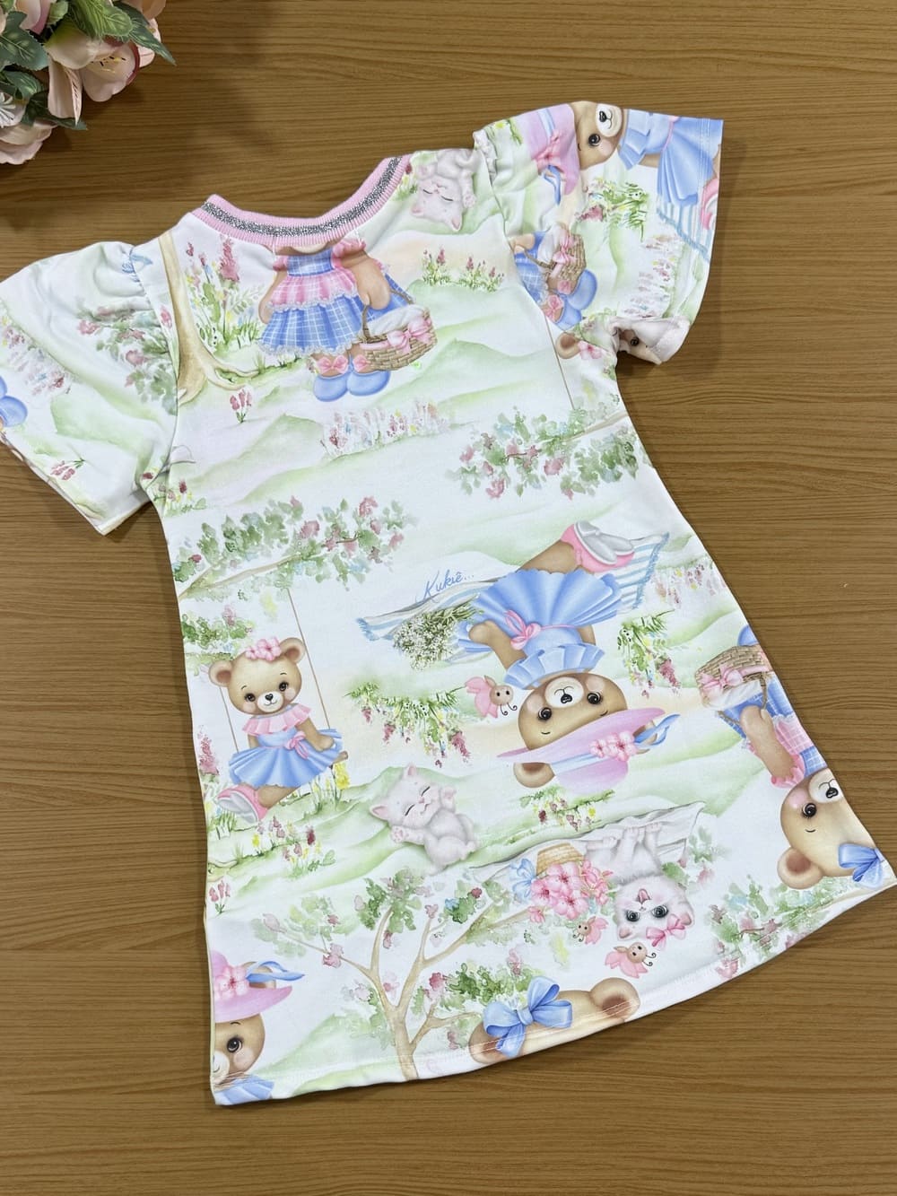 Vestido Infantil Kukie Verão Ursinha Piquenique