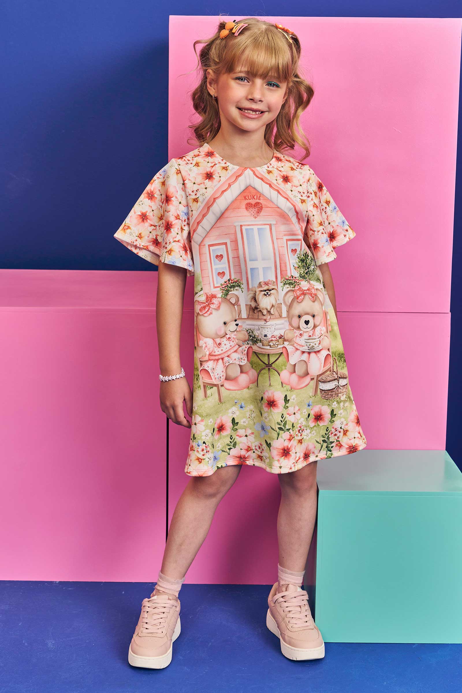 Vestido Infantil Kukie Verão Ursinhas Fofas