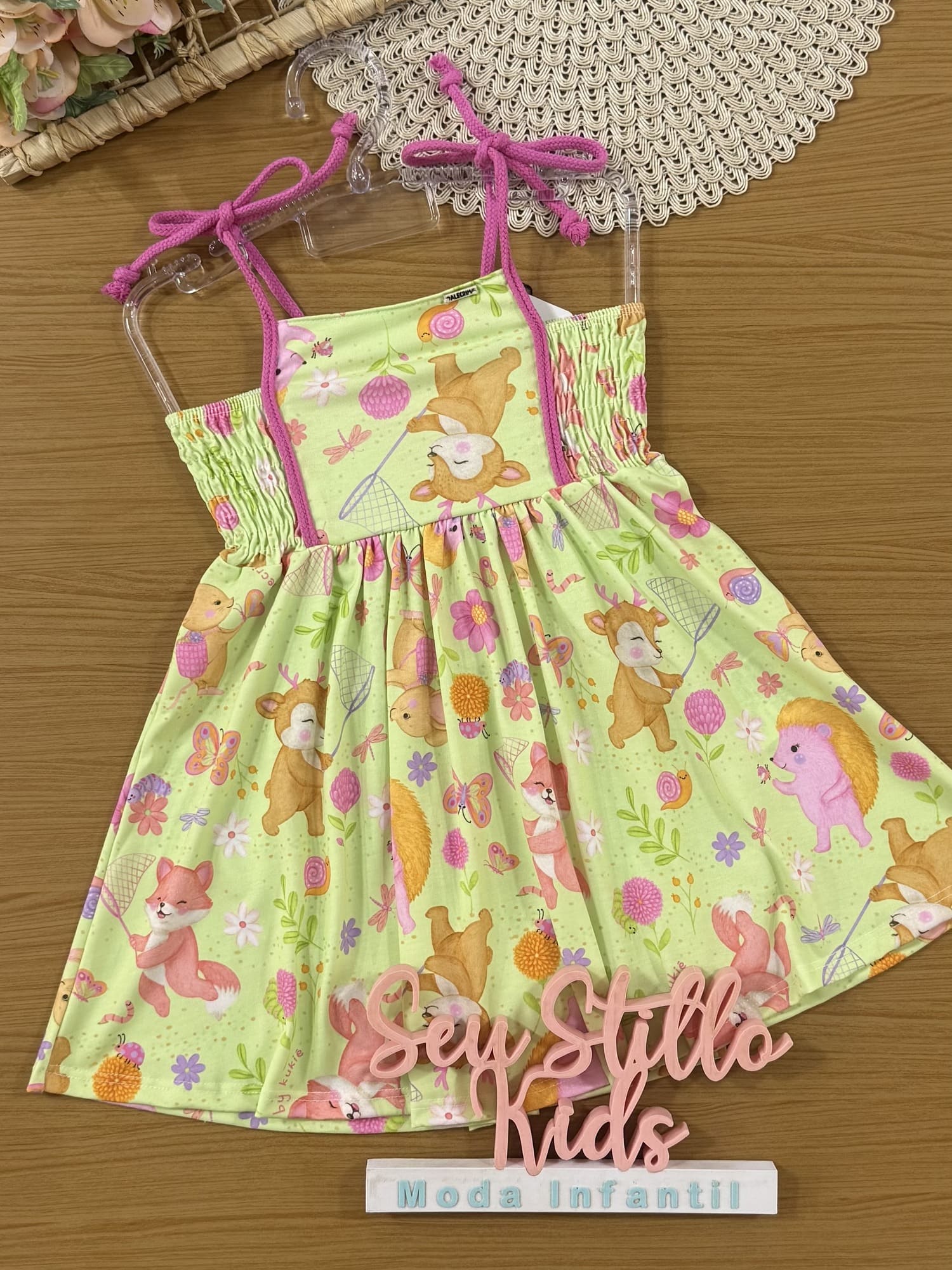 Vestido Infantil Kukiê Verão Verde Animais