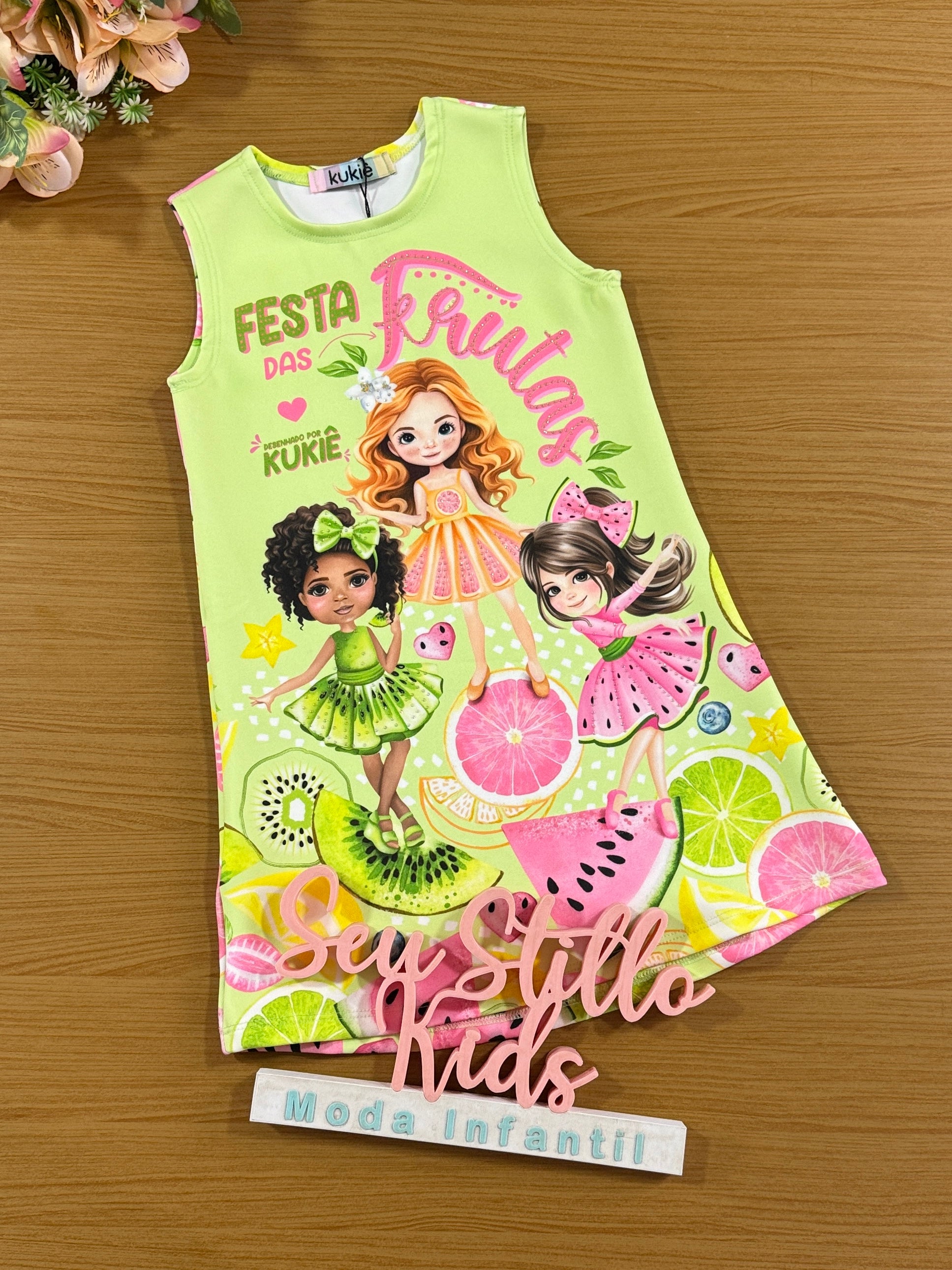 Vestido Infantil Kukie Verão Verde Festa das Frutas
