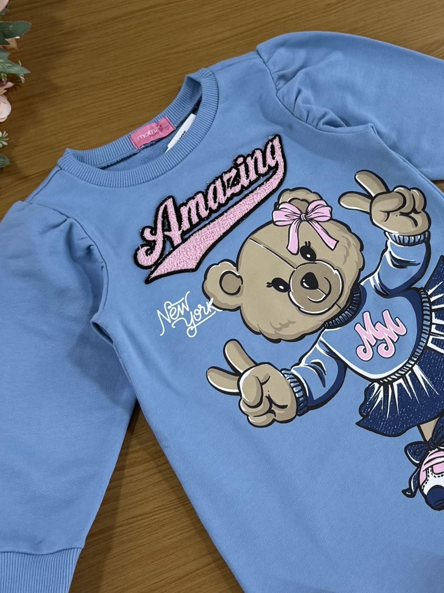 Vestido Infantil Momi Inverno Ursinha Com Patch