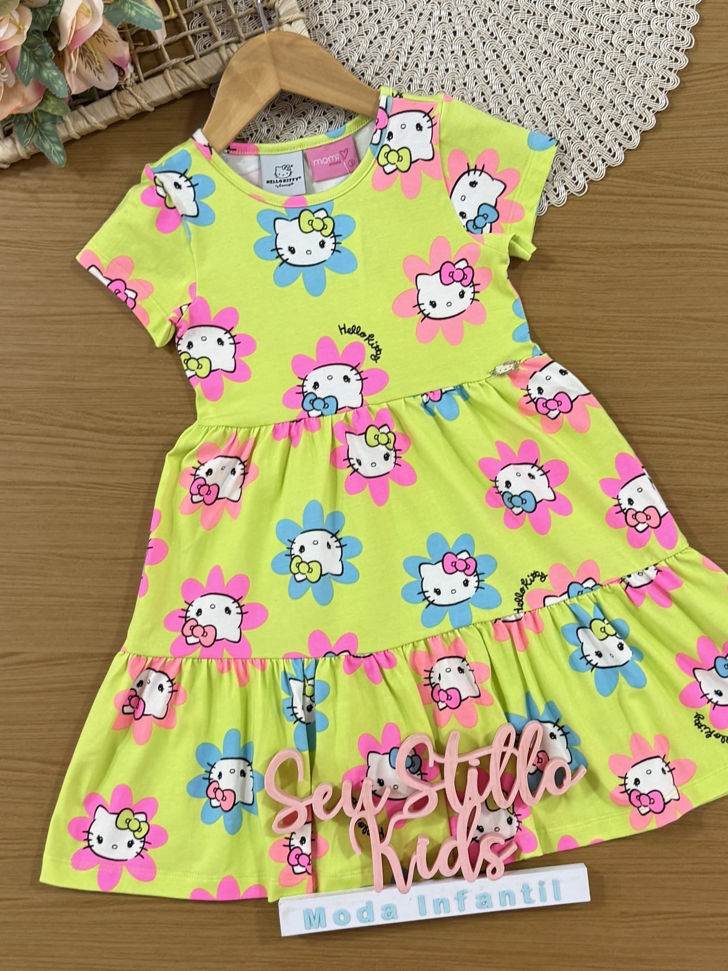 Vestido Infantil Momi Verão Florzinha Hello Kitty Verde