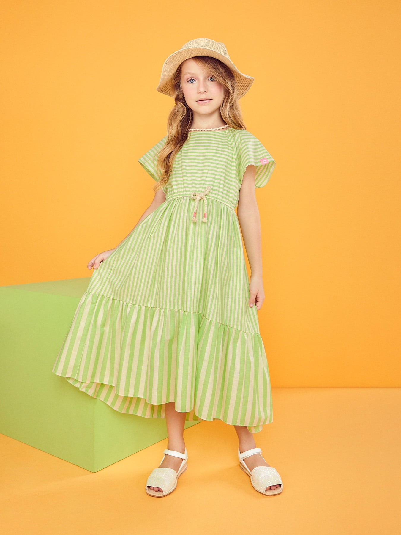 Vestido Infantil Momi Verão Midi Listrado Menta