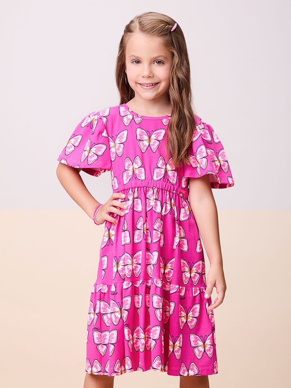 Vestido Infantil Momi Verão Pink Borboleta