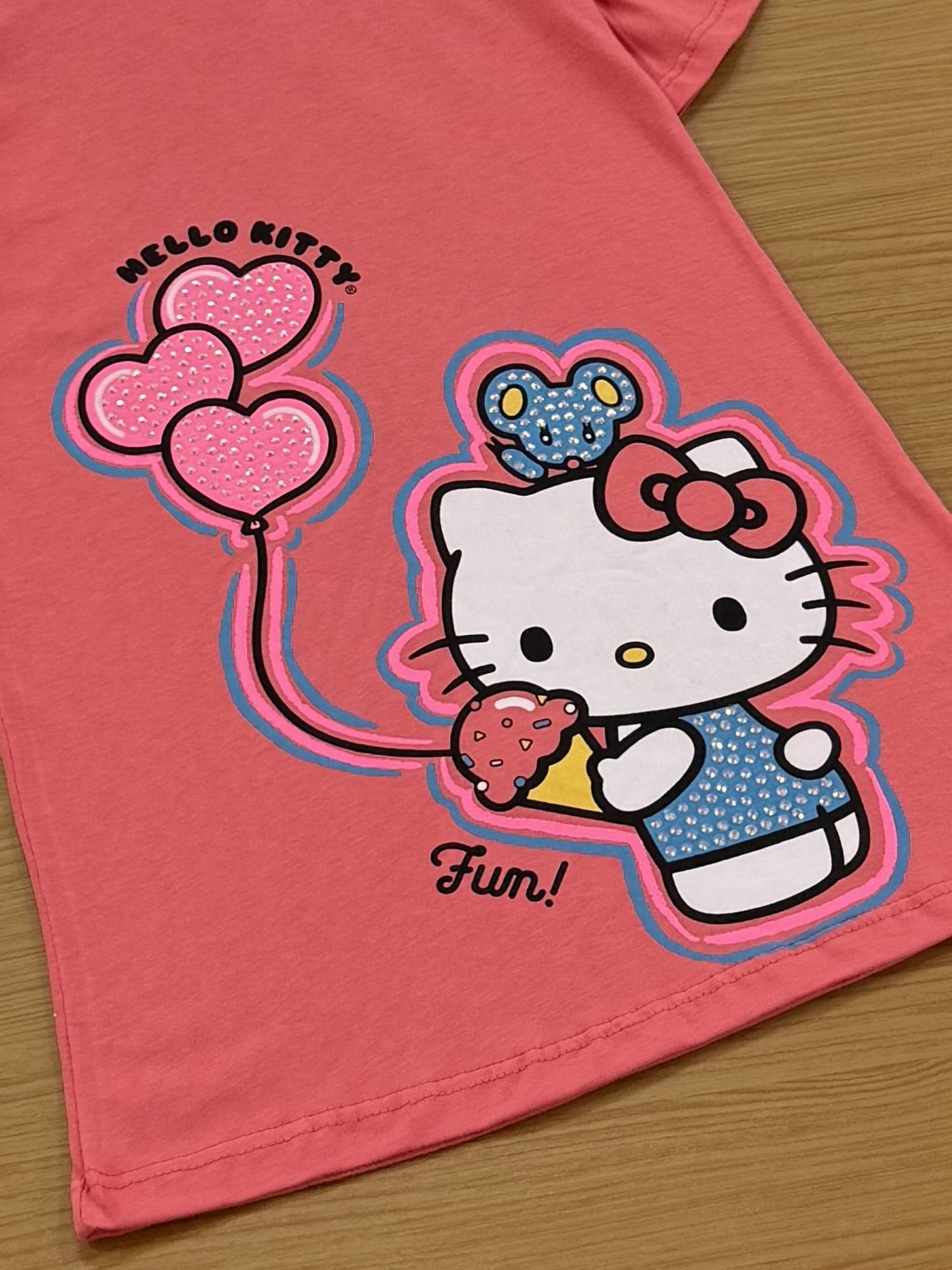 Vestido Infantil Momi Verão Vermelho Hello Kitty com Strass