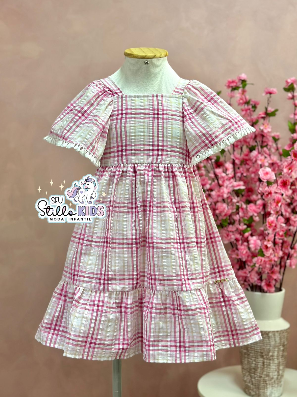 Vestido Infantil Momi Verão Xadrez Rosa